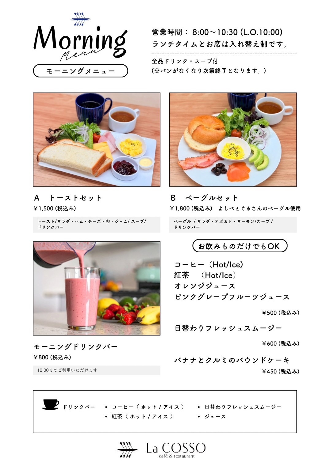※ランチタイム準備のため、モーニングのお席は 10:30までのご利用 とさせていただきます。