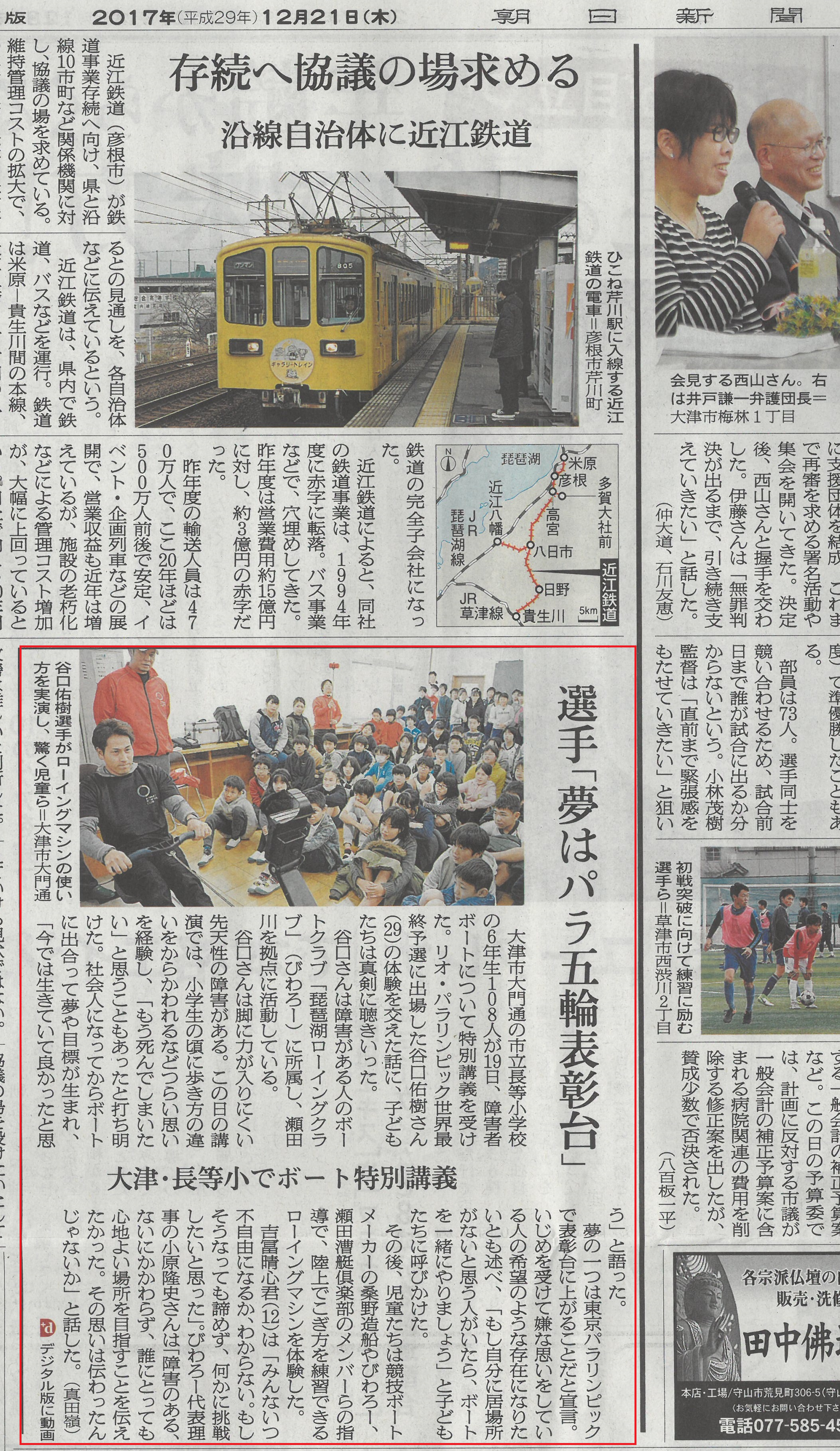 2017/12/21 (長等小学校)朝日新聞 このたび、「朝日新聞」にて当プロジェクトの取り組みをご紹介いただきました。日頃の活動を丁寧に取り上げていただき、大変励みとなっております。上記より掲載記事をご覧いただけます。