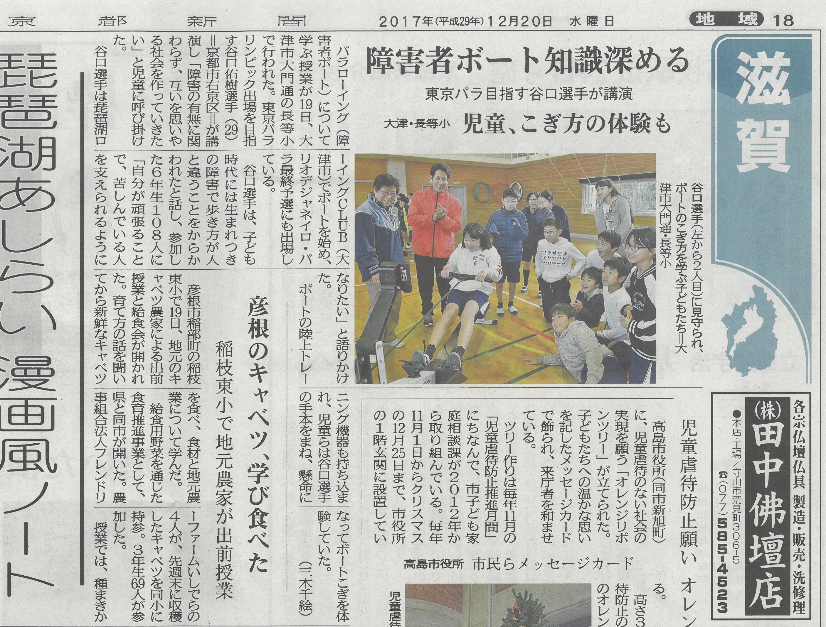2017/12/20 (長等小学校)京都新聞 このたび、「京都新聞」にて当プロジェクトの取り組みをご紹介いただきました。日頃の活動を丁寧に取り上げていただき、大変励みとなっております。上記より掲載記事をご覧いただけます。