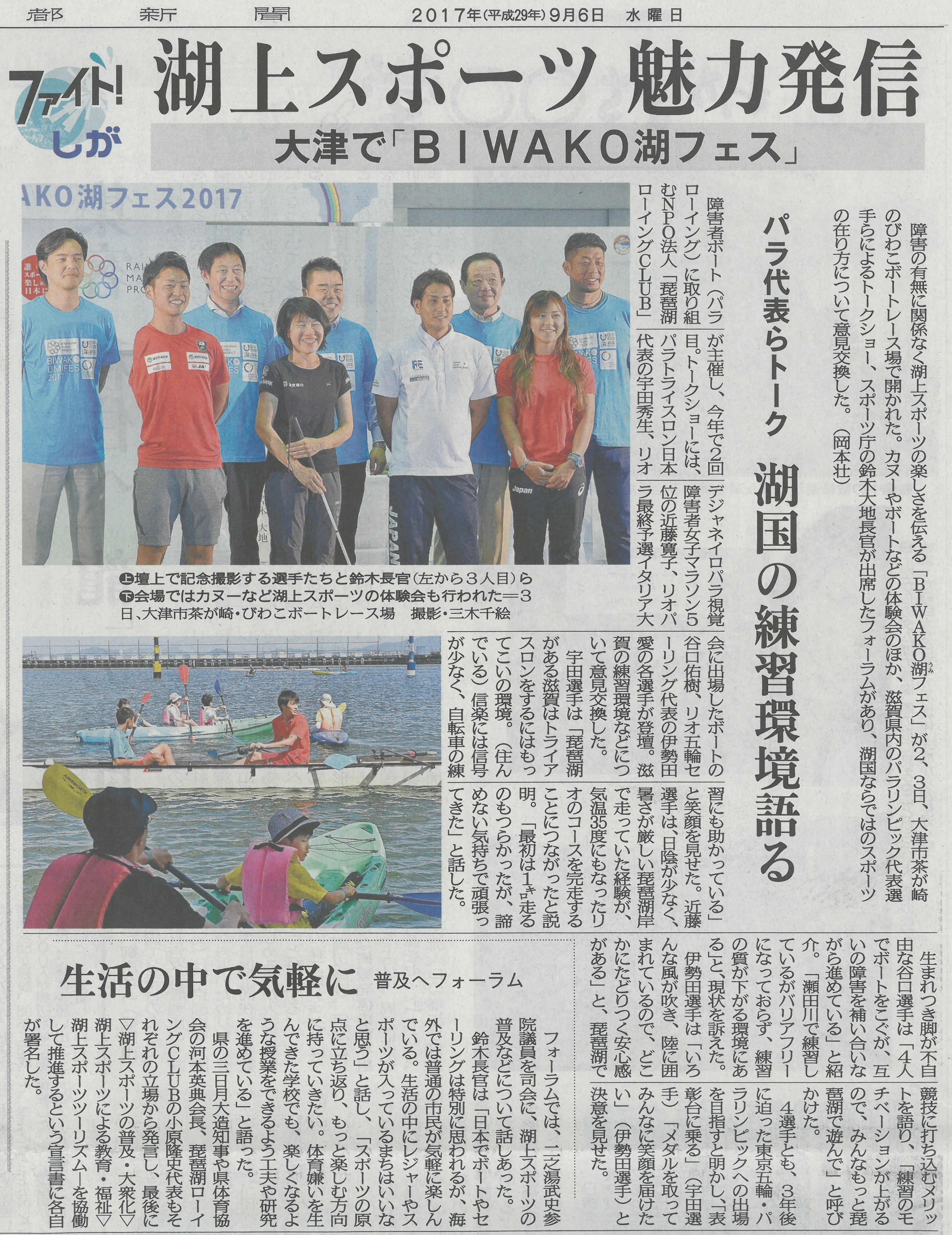 2017/09/06 (湖フェス)京都新聞 このたび、「京都新聞」にて当プロジェクトの取り組みをご紹介いただきました。日頃の活動を丁寧に取り上げていただき、大変励みとなっております。上記より掲載記事をご覧いただけます。