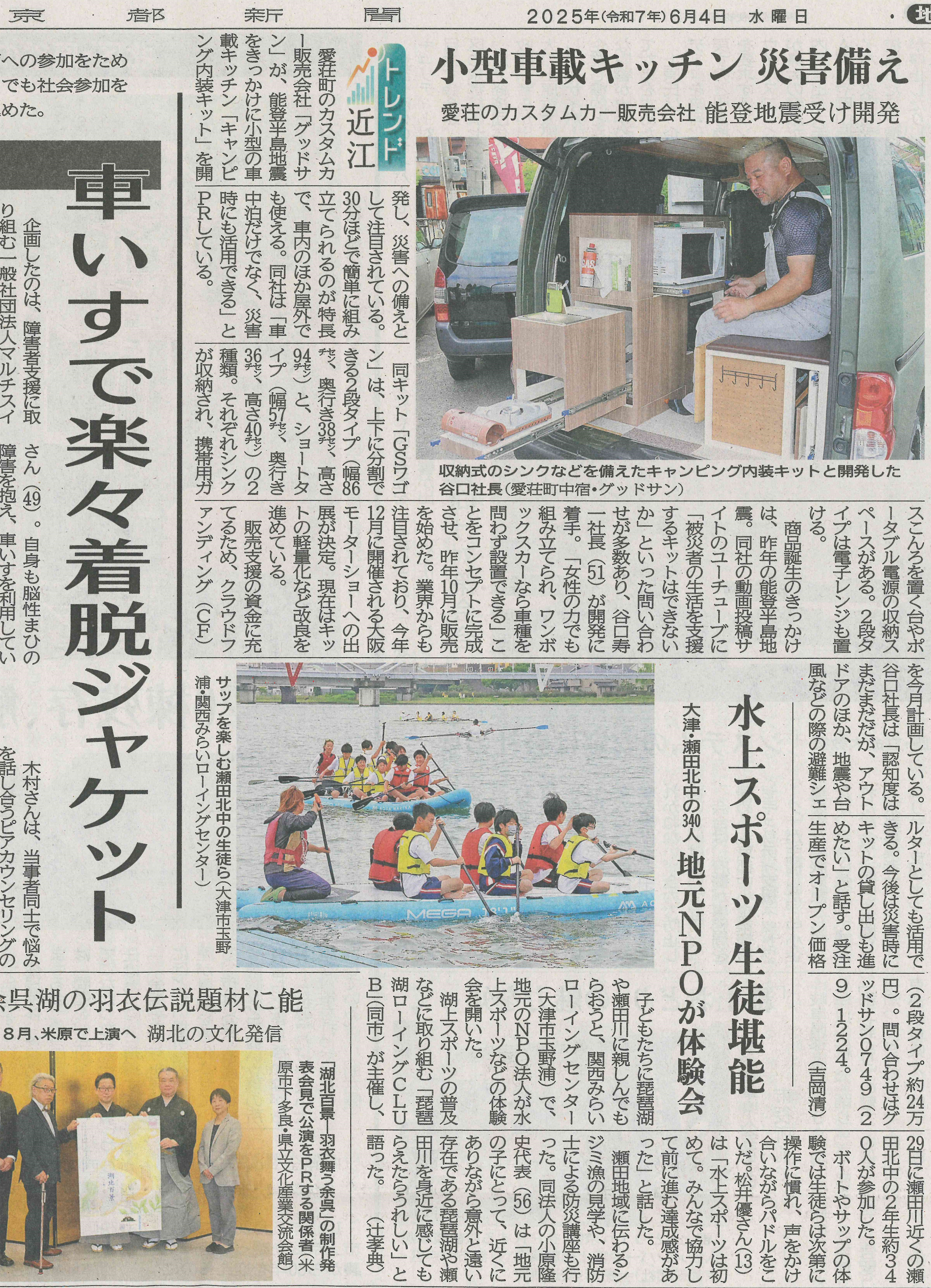 このたび、「京都新聞」にて、水上アクティビティの紹介記事を掲載いただきました。