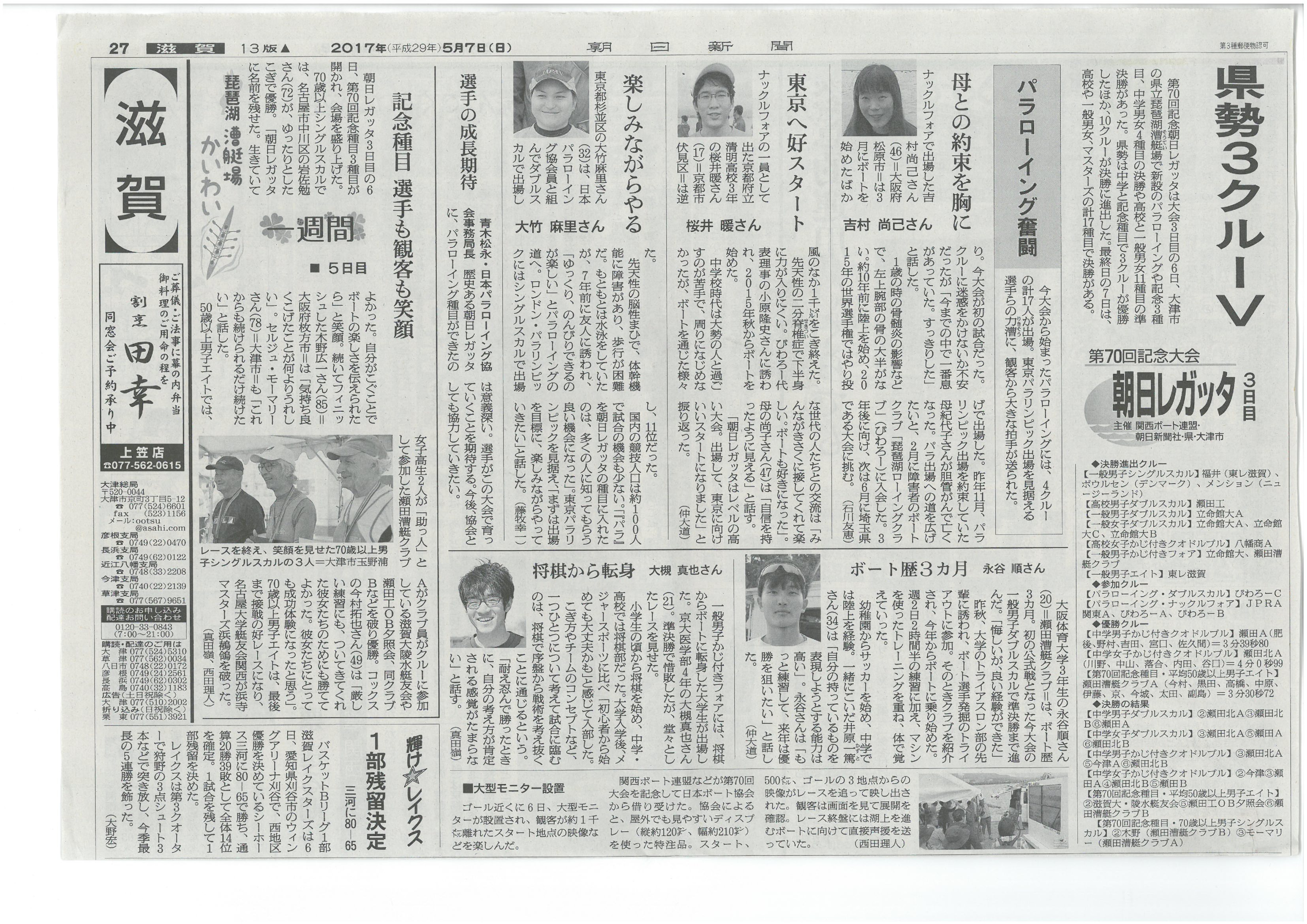 2017/05/07 (朝日レガッタ選手紹介)朝日新聞 このたび、「朝日新聞」にて当プロジェクトの取り組みをご紹介いただきました。日頃の活動を丁寧に取り上げていただき、大変励みとなっております。上記より掲載記事をご覧いただけます。
