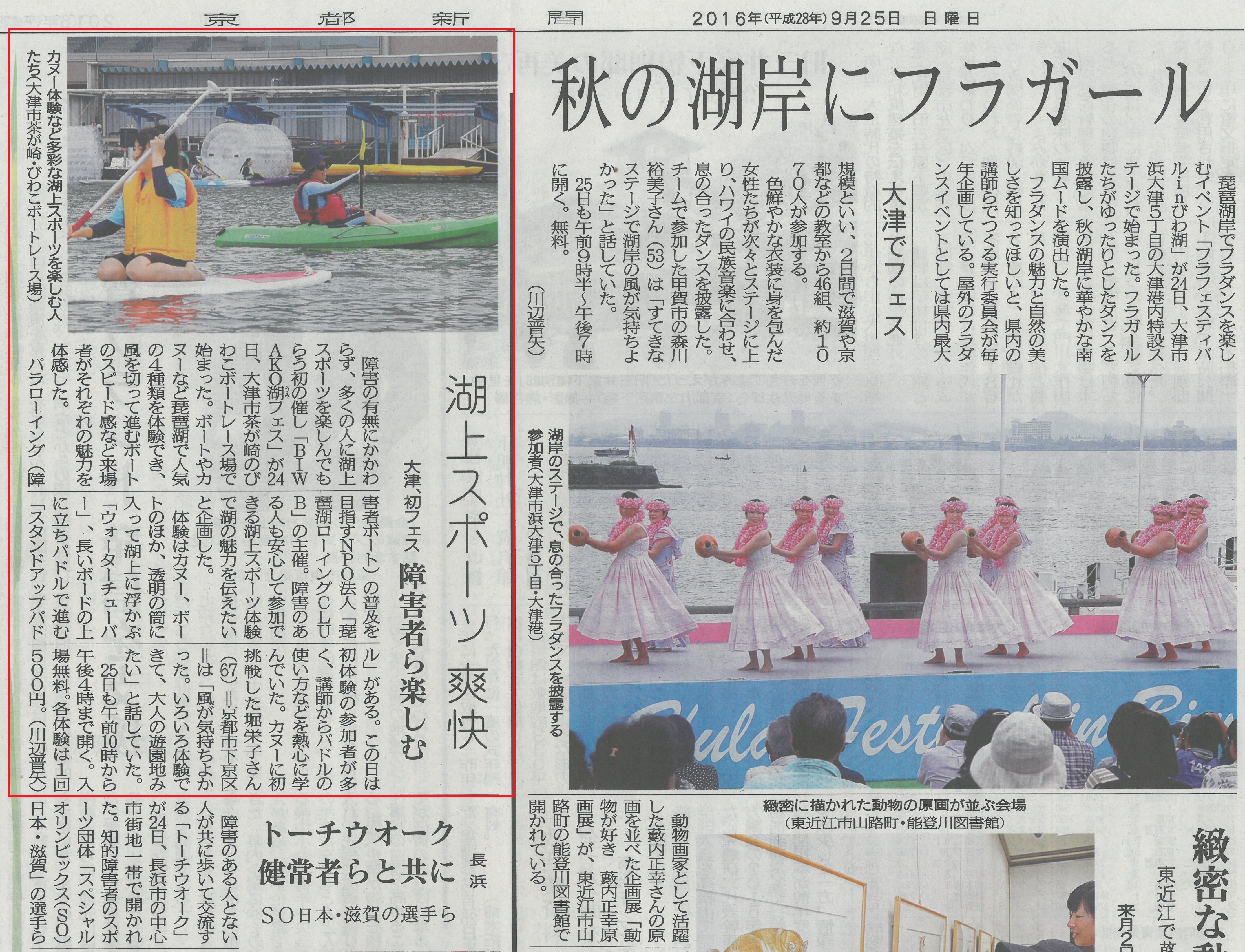 2016/09/25 (当日 湖フェス2016)京都新聞 このたび、「京都新聞」にて当プロジェクトの取り組みをご紹介いただきました。日頃の活動を丁寧に取り上げていただき、大変励みとなっております。上記より掲載記事をご覧いただけます。