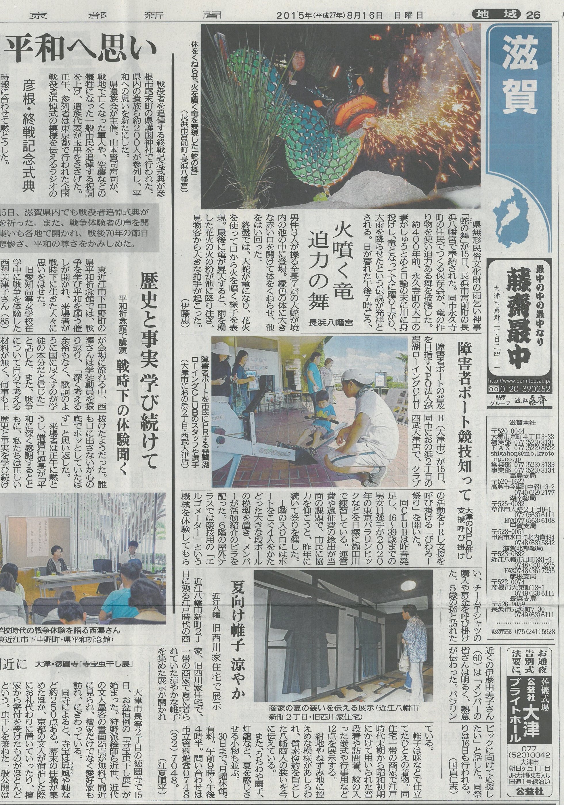 2015/08/16 (びわろー祭り2015)京都新聞 このたび、「京都新聞」にて当プロジェクトの取り組みをご紹介いただきました。日頃の活動を丁寧に取り上げていただき、大変励みとなっております。上記より掲載記事をご覧いただけます。