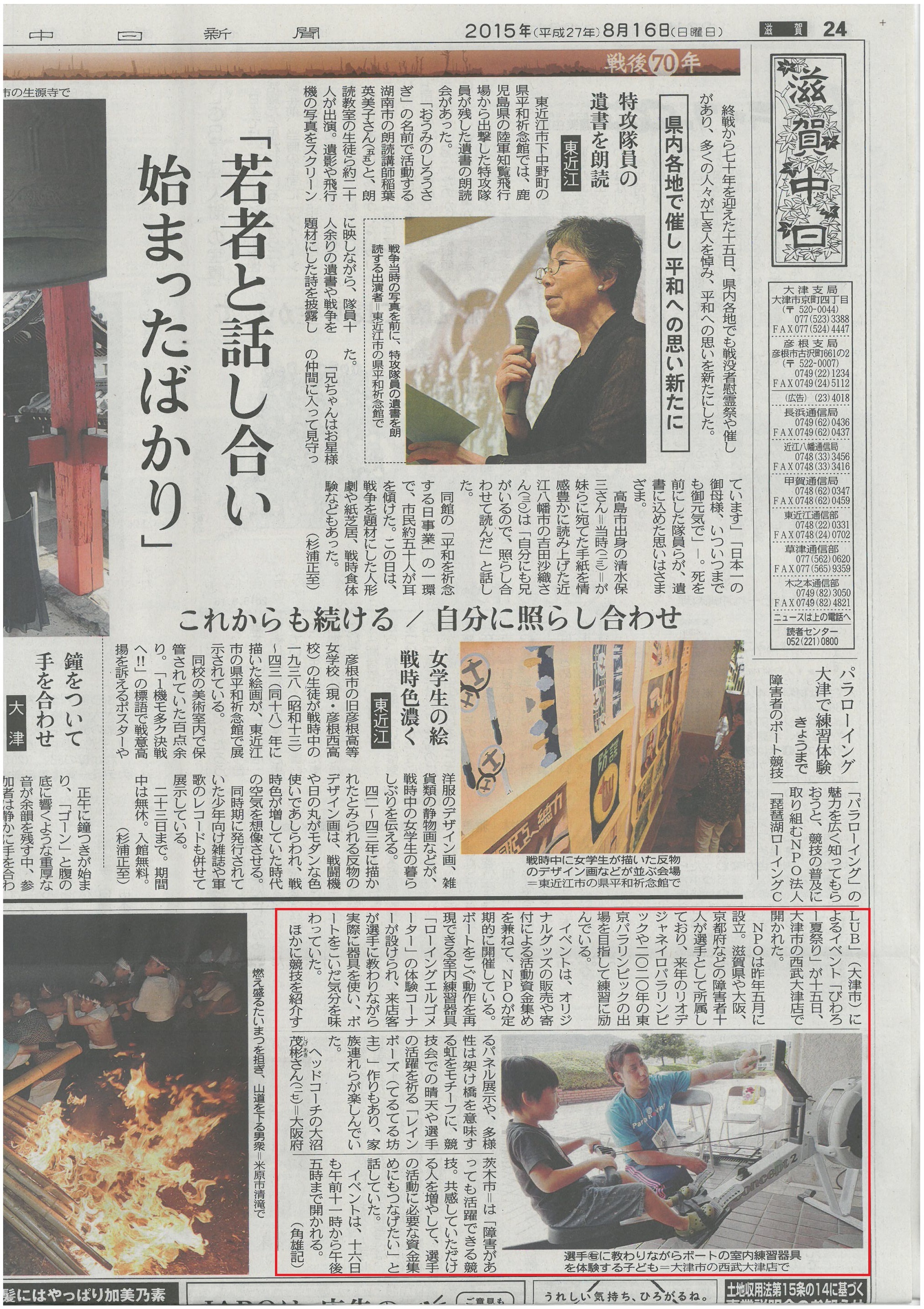 2015/08/16 (記事)中日新聞 このたび、「中日新聞」にて当プロジェクトの取り組みをご紹介いただきました。日頃の活動を丁寧に取り上げていただき、大変励みとなっております。上記より掲載記事をご覧いただけます。