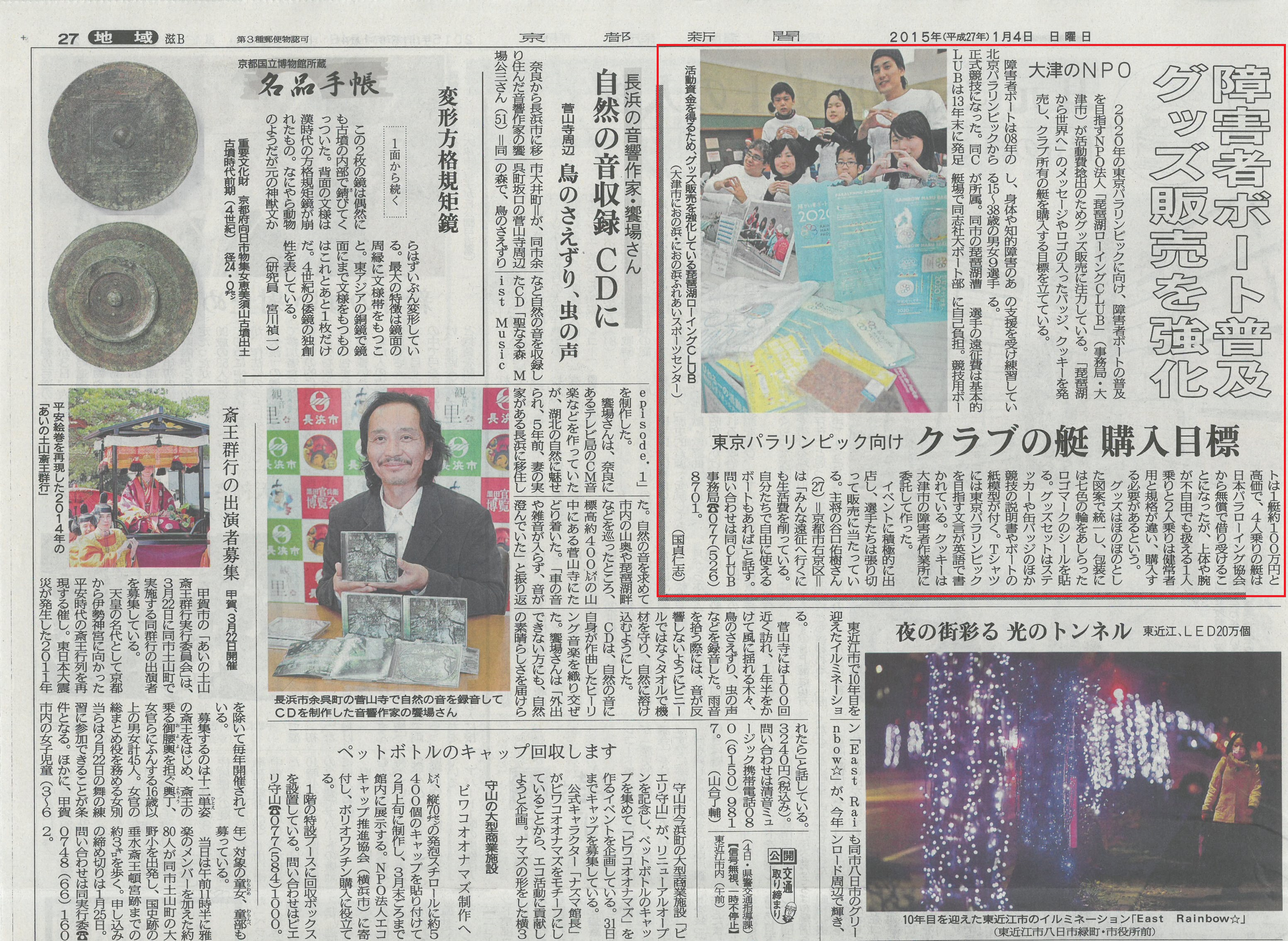 2015/01/04 (グッズ販売)京都新聞 このたび、「京都新聞」にて当プロジェクトの取り組みをご紹介いただきました。日頃の活動を丁寧に取り上げていただき、大変励みとなっております。上記より掲載記事をご覧いただけます。